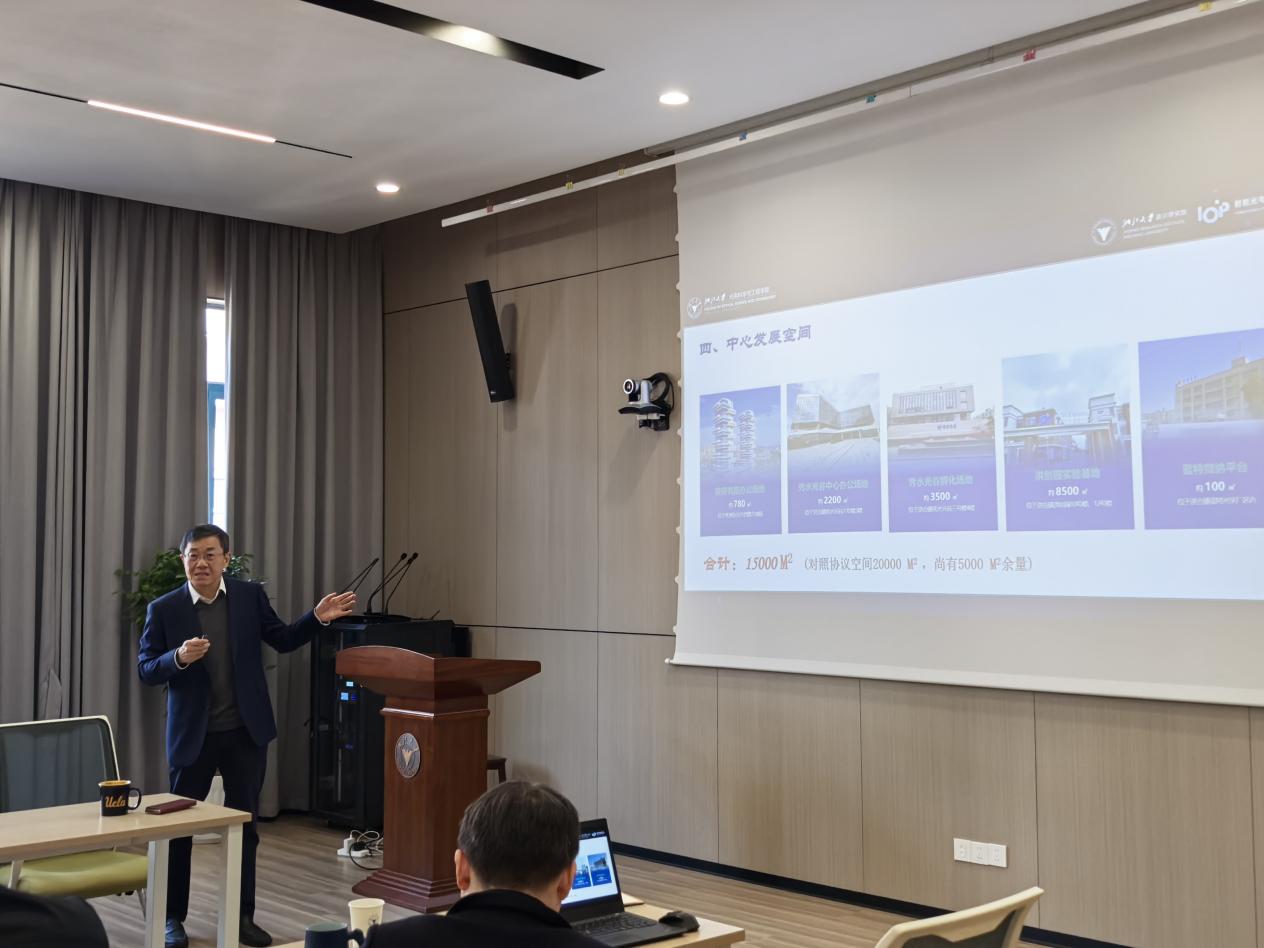 交流环节结束后,杨旸副院长发言,对中心过往取得的显著成效给予高度肯定,同时结合学院学科建设布局,对中心下一步工作提出具体指导意见,强调要持续强化团队协作,聚焦关键核心技术开展攻关,推动研究成果与产业需求精准对接。他表示,光电中心地处嘉兴南湖机场临空经济区核心,需提升自身能力、融入临空经济,提供决策指南,讲好发展故事。
